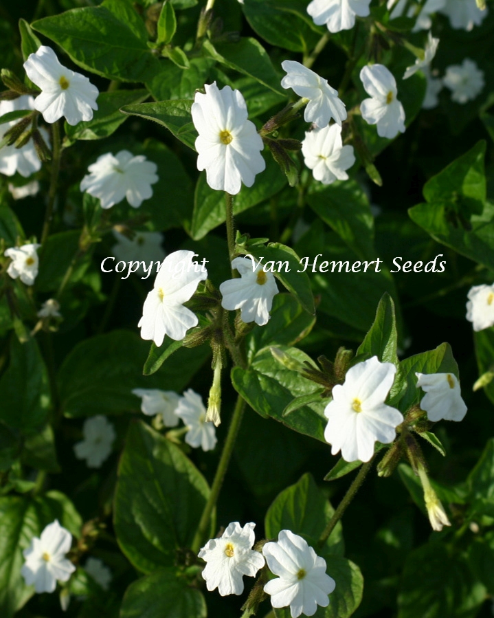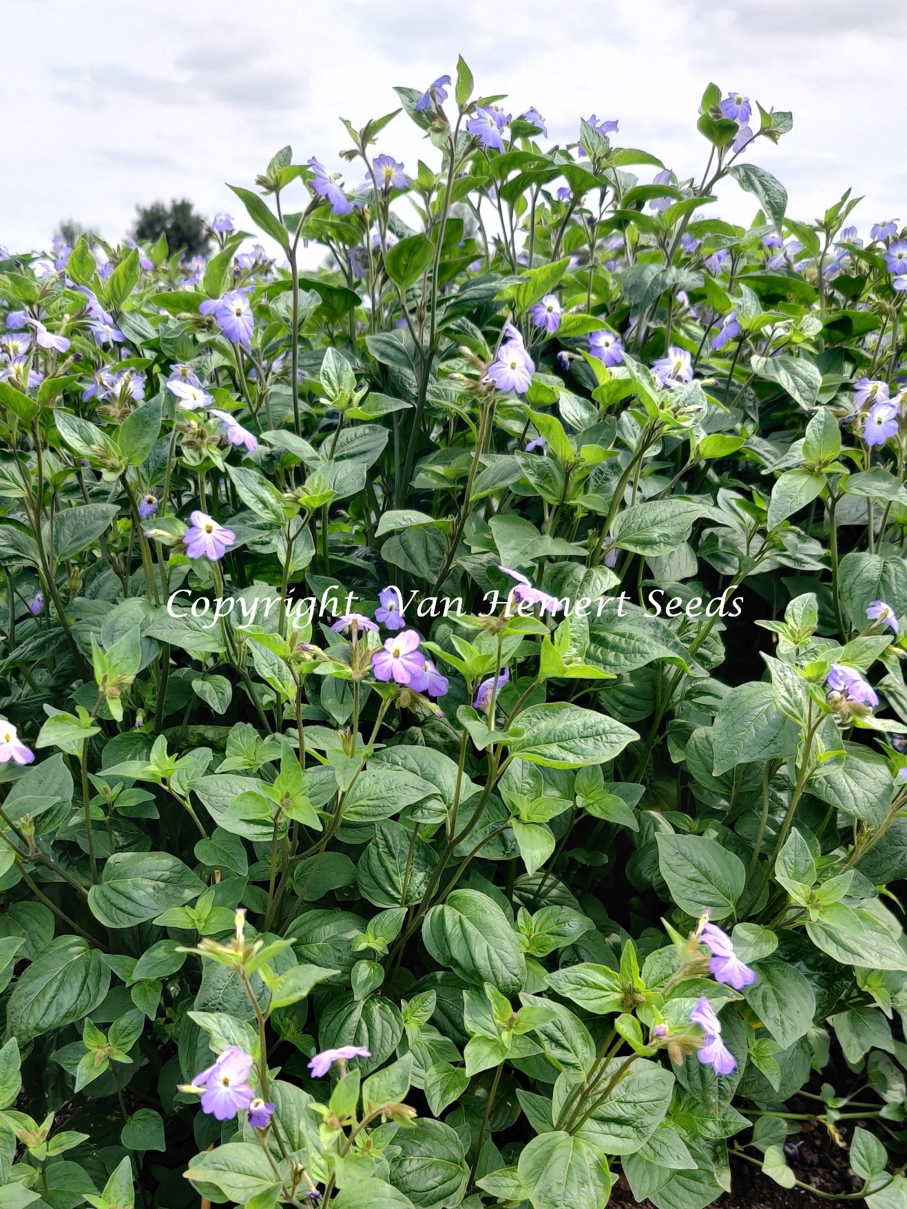 100860 - Pretty blue flowering annual with dark green ovate leaves. Flowering in summer and late summer with numerous 2 cm / 1 in wide clear blue flowers with a light blue and cream centre. Easy to grow in full sun or partial shade, on every average garden soil.