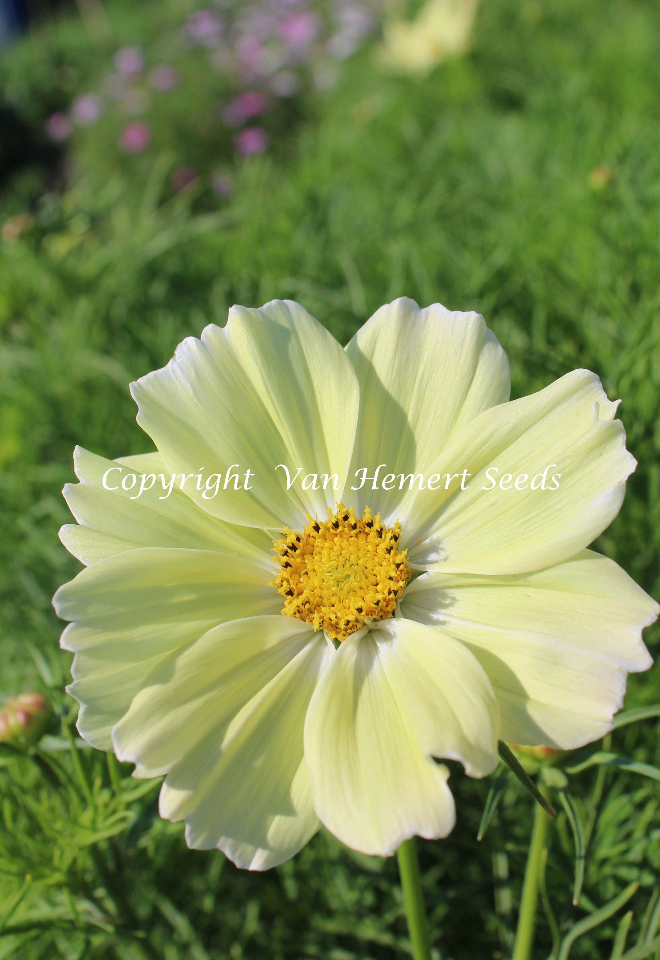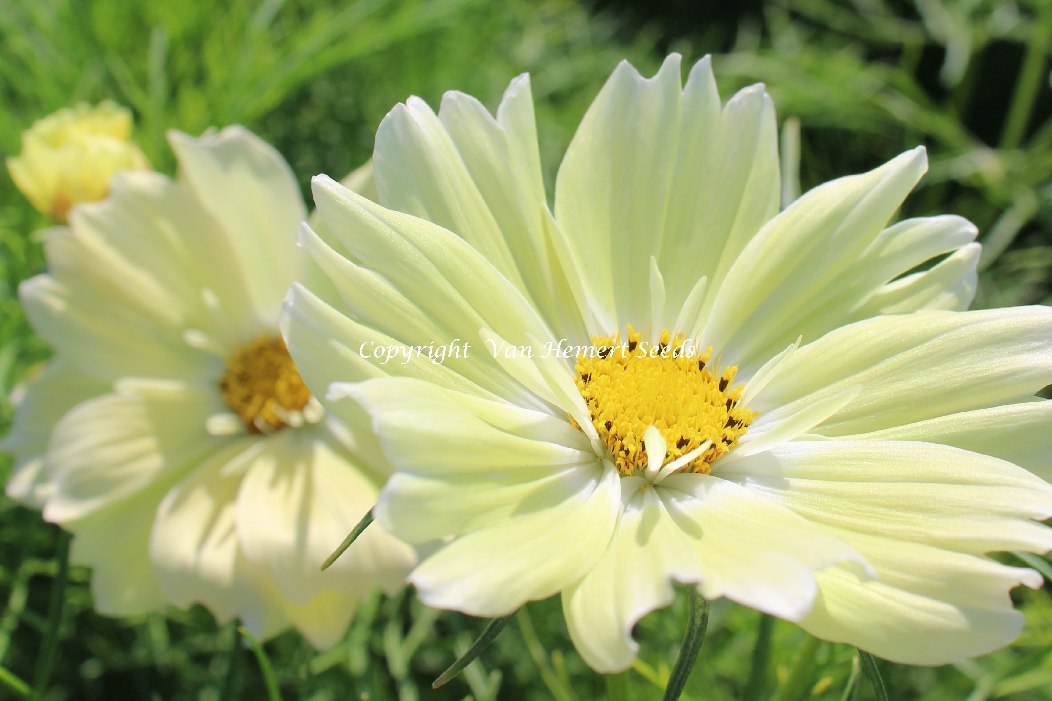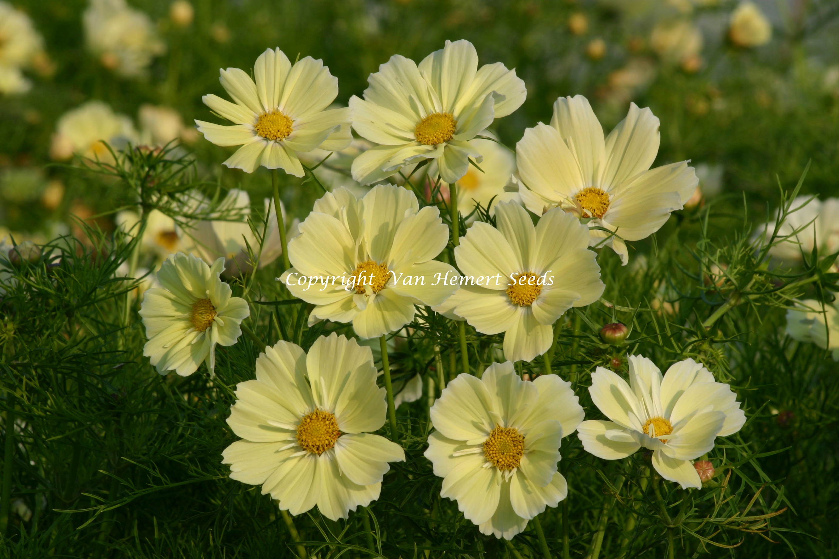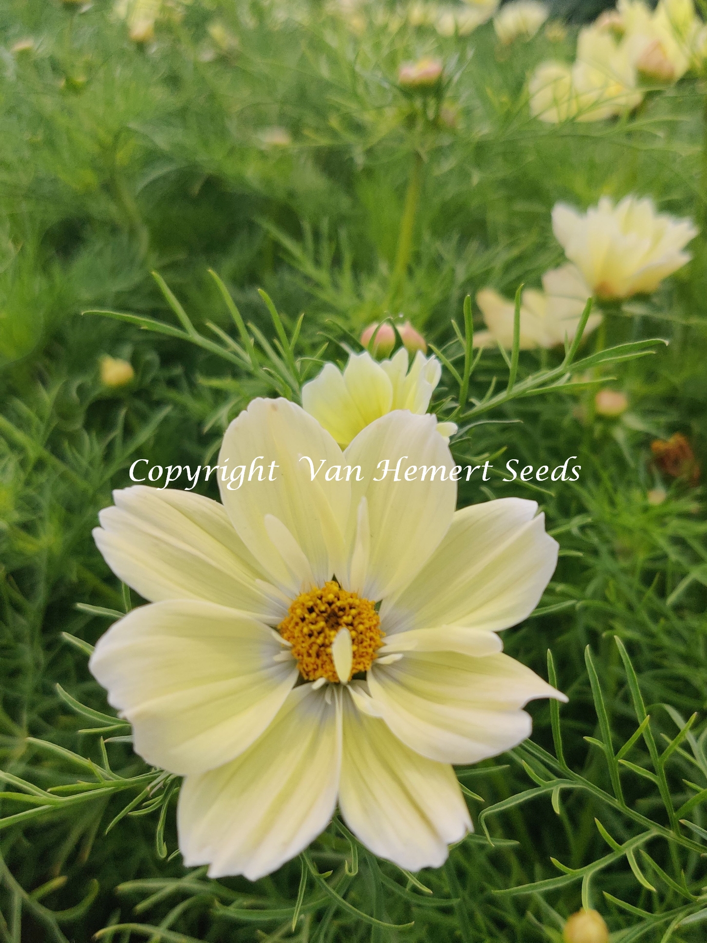 101090 - Cosmos: the sky is the limit, but Xanthos goes beyond. Cosmos Xanthos is an amazing Cosmos. This breeding breakthrough excited many visitors of the 2014 Fleuroselect trials. They had seen many Cosmos varieties before but never seen such a unique yellow Cosmos bipinnatus. Early flowering with round flowers, single and some with collarette in stunning soft yellow. Press-Award Plantarium 2015. Fleuroselect Gold Medal 2016