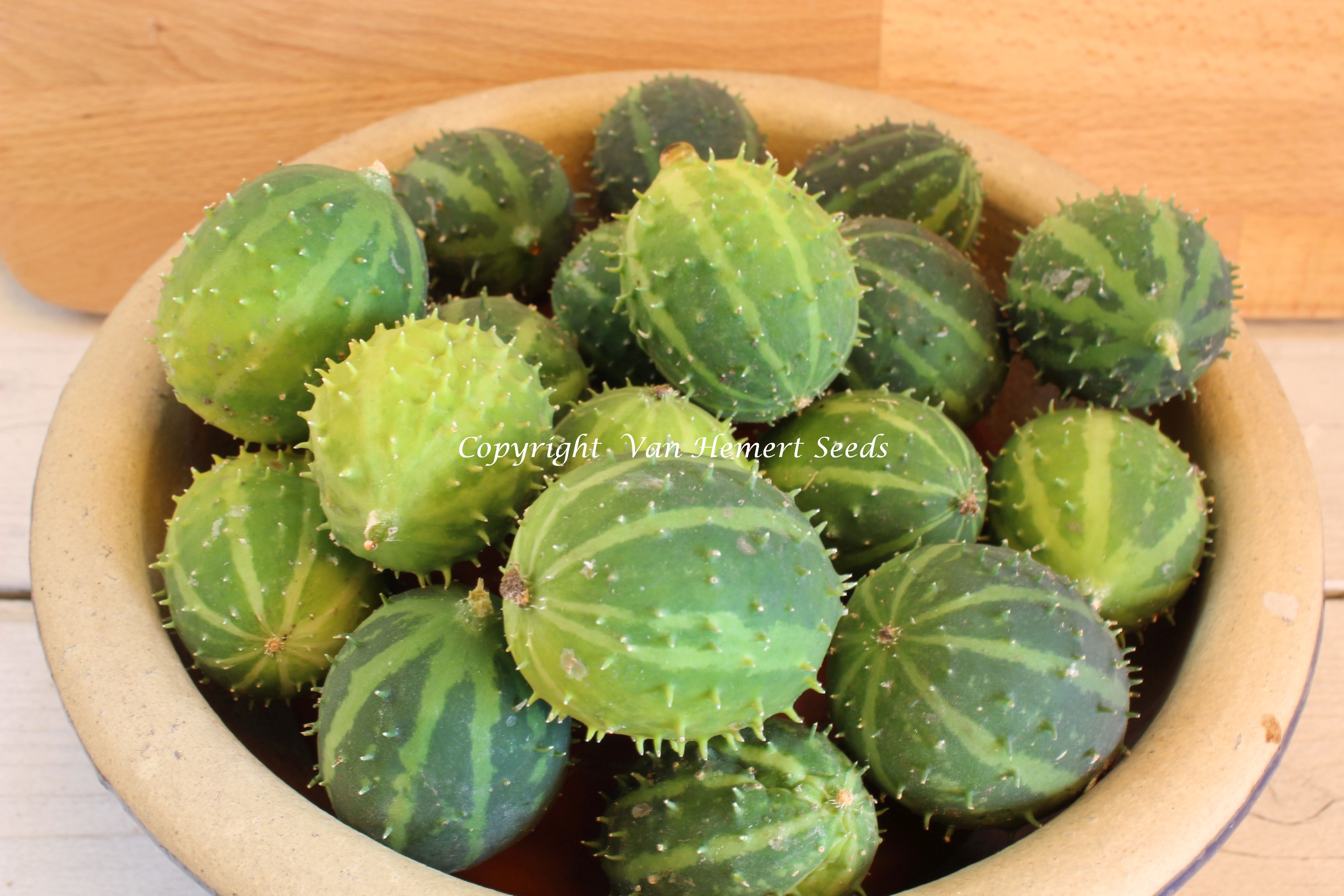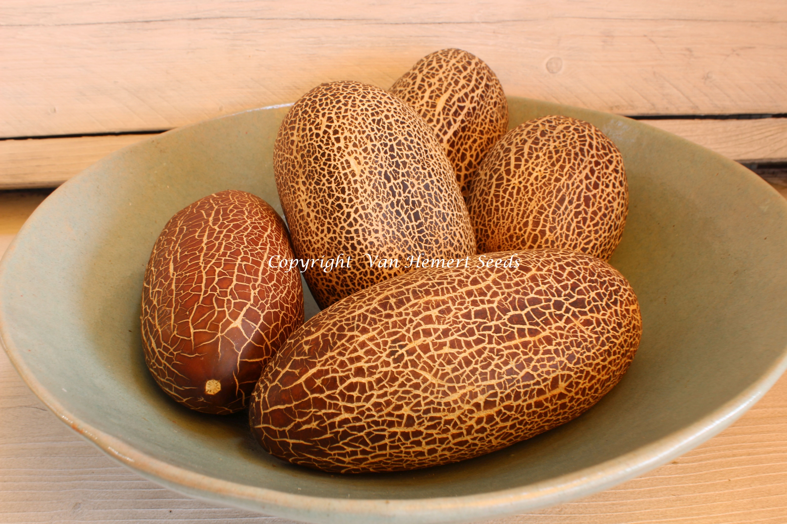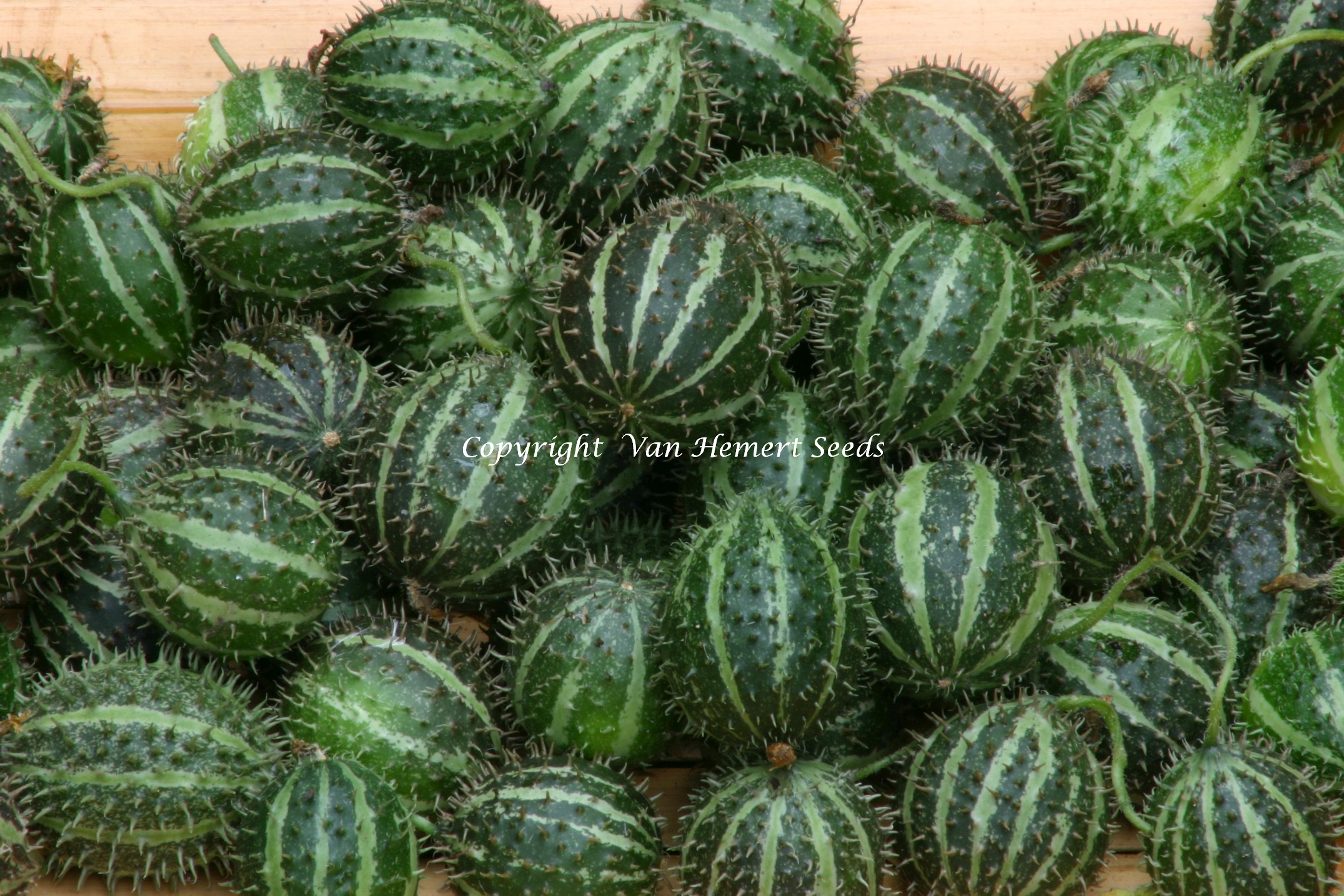 Ornamental or deco-cucumbers in all kinds of shapes and colours. The fruits do not look like the usual edible cucumbers and are for ornamental use only. Fruits are used as, or in combination with, small pumpkins in decorations in autumn, fruit plates, flower arrangements etc. Culture is easy, grow on a warm, sheltered site as climber or trailing plant, the average plant spread is 120-180 cm / 47-70 in. Harvest the fruits late summer, early autumn for decoration only. See also Zehneria scabra.