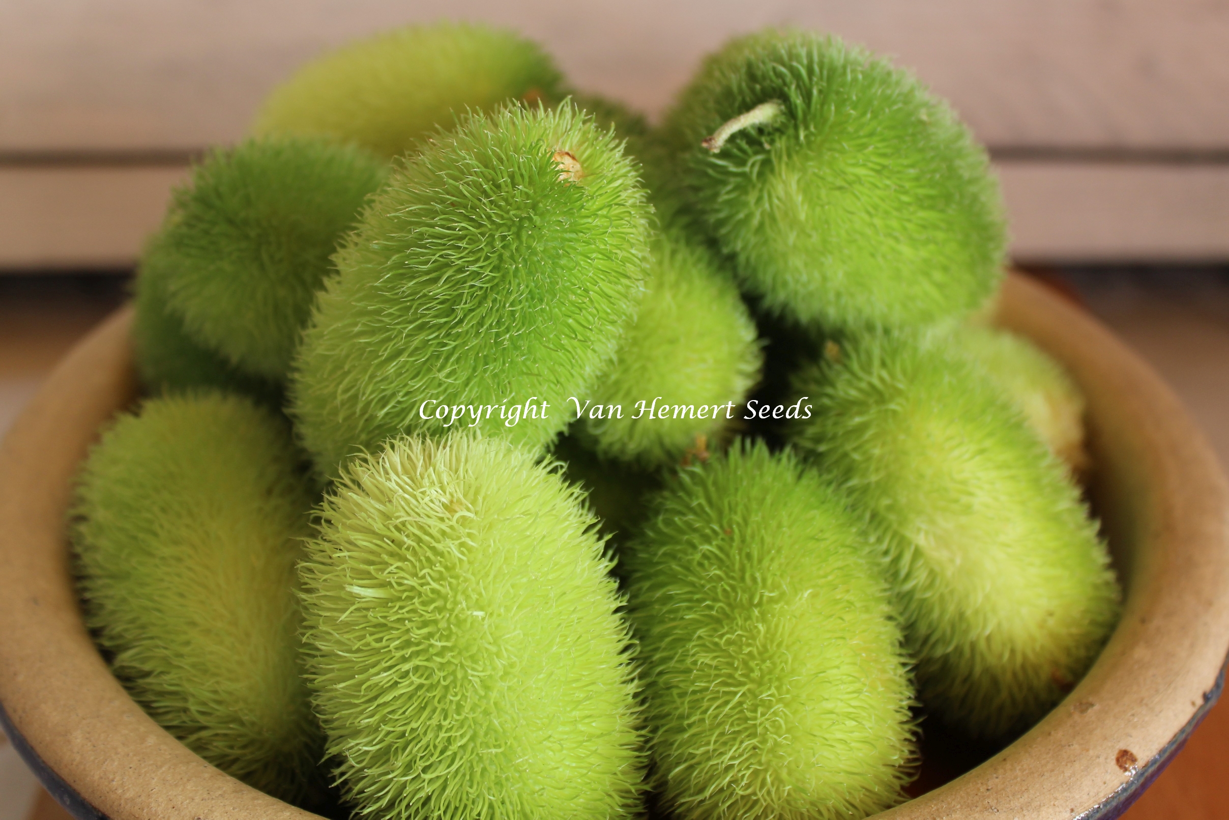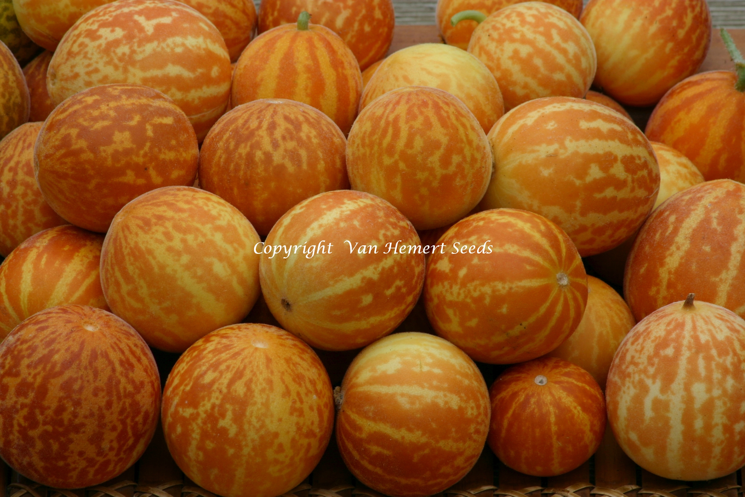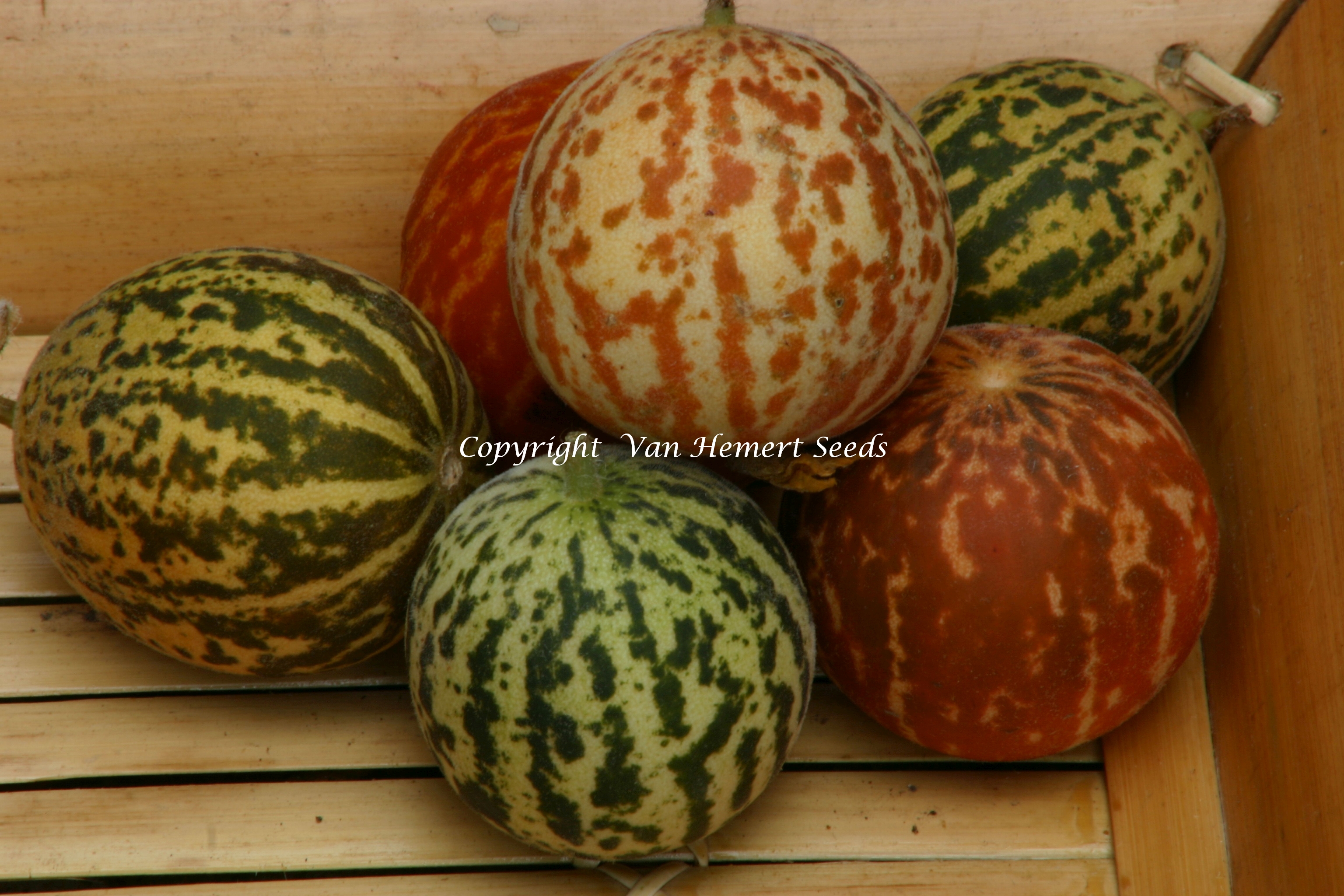 Ornamental or deco-cucumbers in all kinds of shapes and colours. The fruits do not look like the usual edible cucumbers and are for ornamental use only. Fruits are used as, or in combination with, small pumpkins in decorations in autumn, fruit plates, flower arrangements etc. Culture is easy, grow on a warm, sheltered site as climber or trailing plant, the average plant spread is 120-180 cm / 47-70 in. Harvest the fruits late summer, early autumn for decoration only. See also Zehneria scabra.