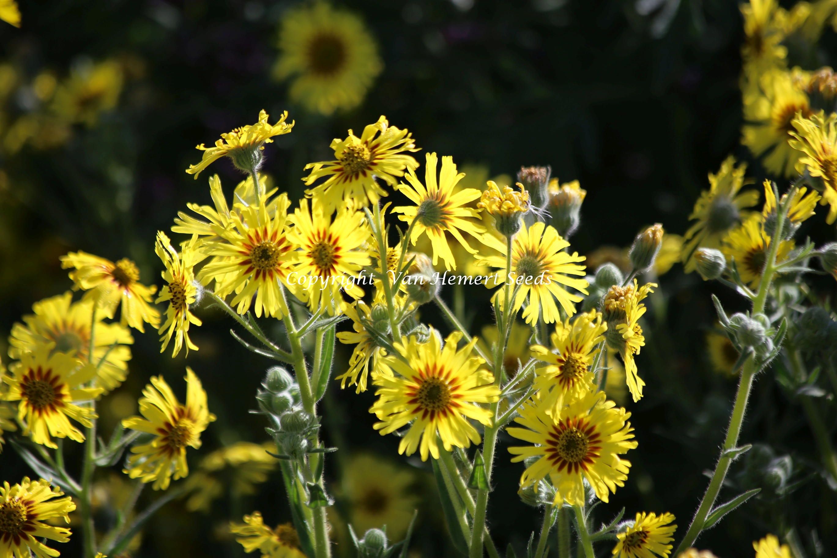 104950 - Common Tarweed. Deliciously fragrant annual. The intoxicating fragrance, resembling a tropical fruit cocktail, delights everyone coming close to it on a warm summer evening or early summer morning. Night flowering plants use fragrance to attract insects at night. Flowers are yellow with a maroon ring round the centre.