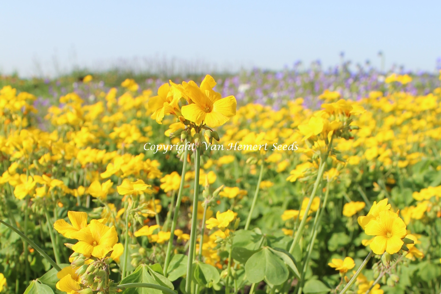 106120 - One of the few annual Oxalis species. Quite easy to grow. It quickly forms nice green plant with clover like leaves. The golden yellow flowers keep on popping up during the summer from the base. Suitable for flower beds and large pots in full sun or partial shade.