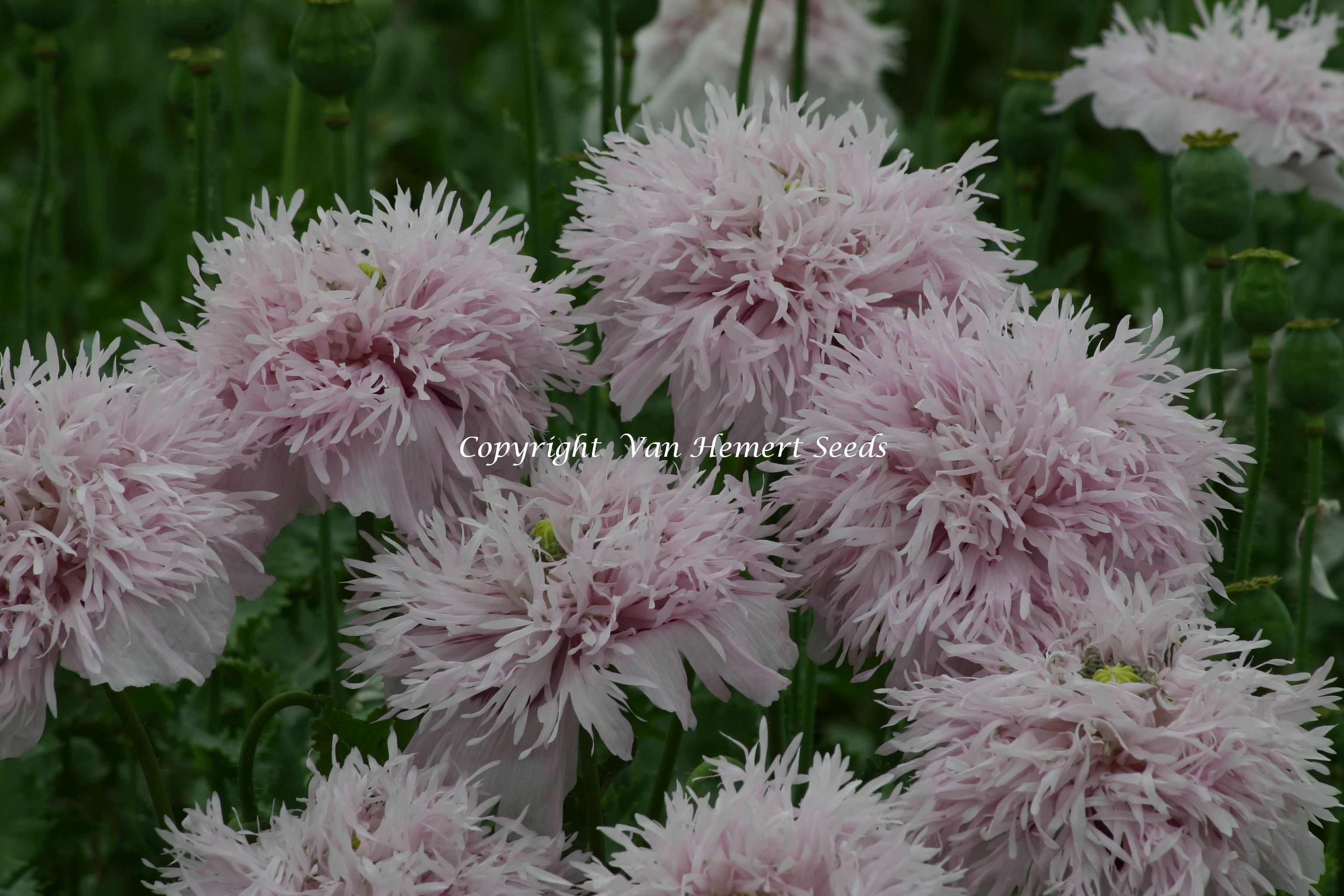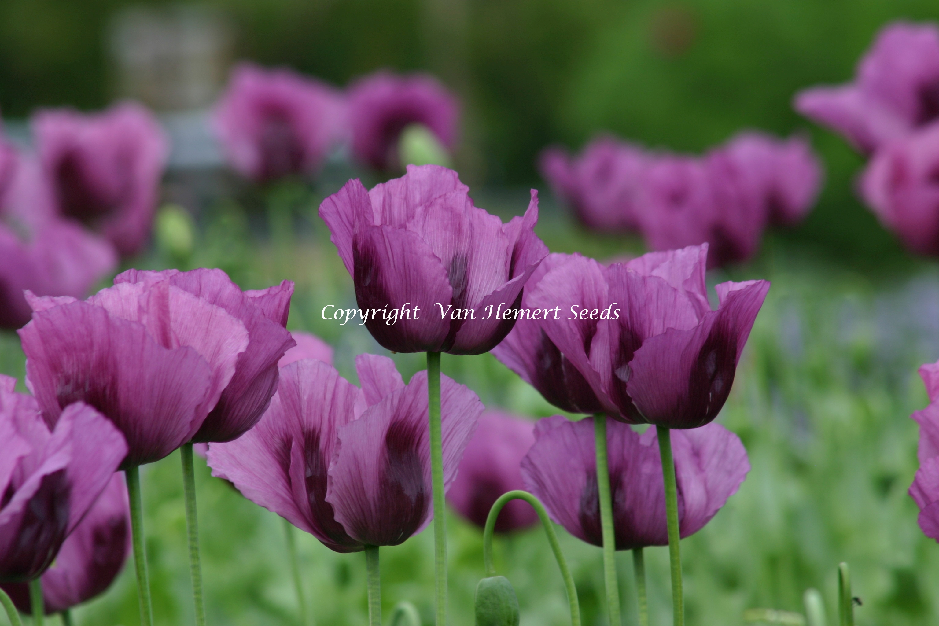 106277 - Heirloom bread-seed poppy variety with single flowers in purple-blue shades and dark markings on each petal. The grey-blue seeds are used for baking.