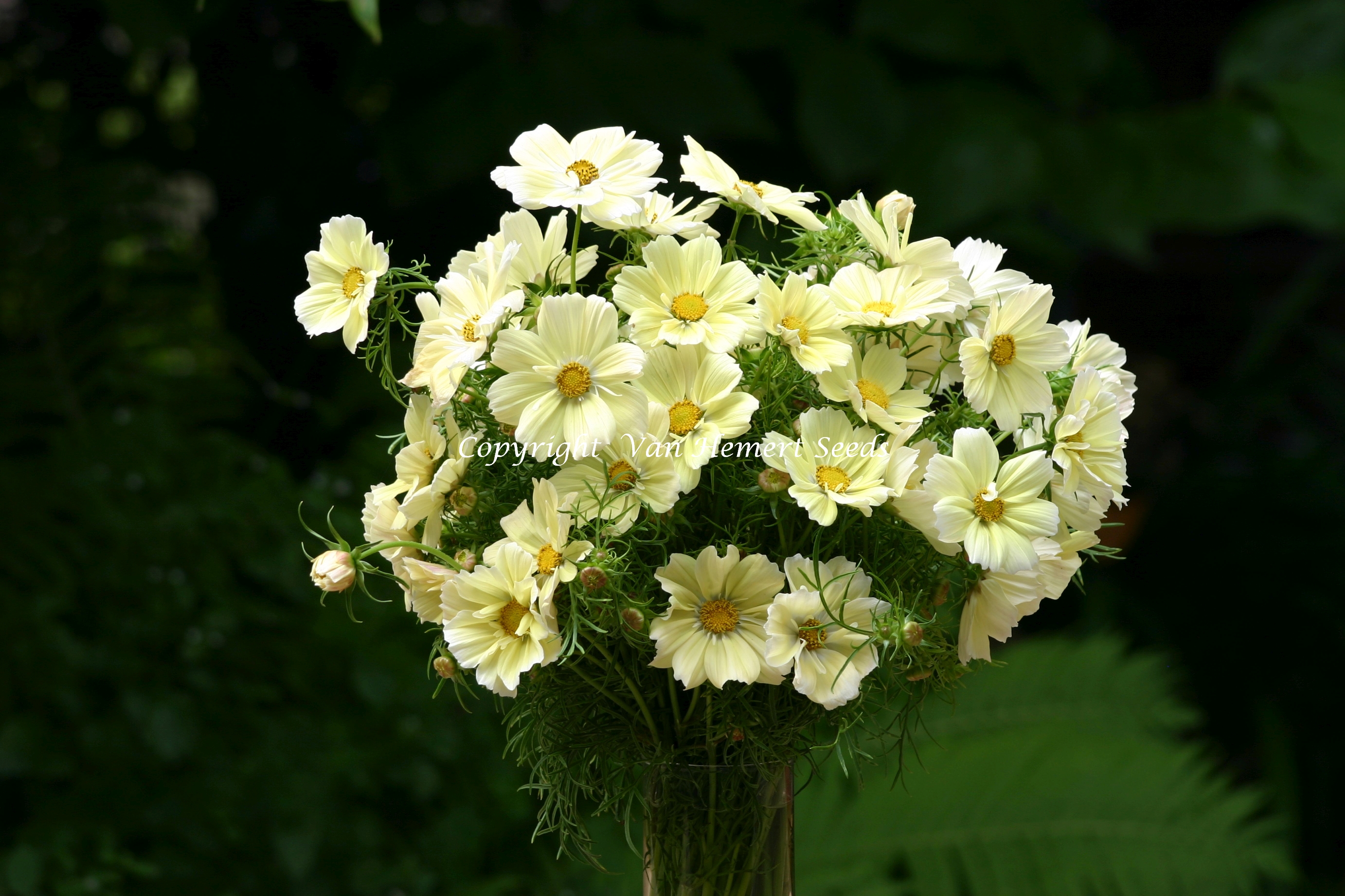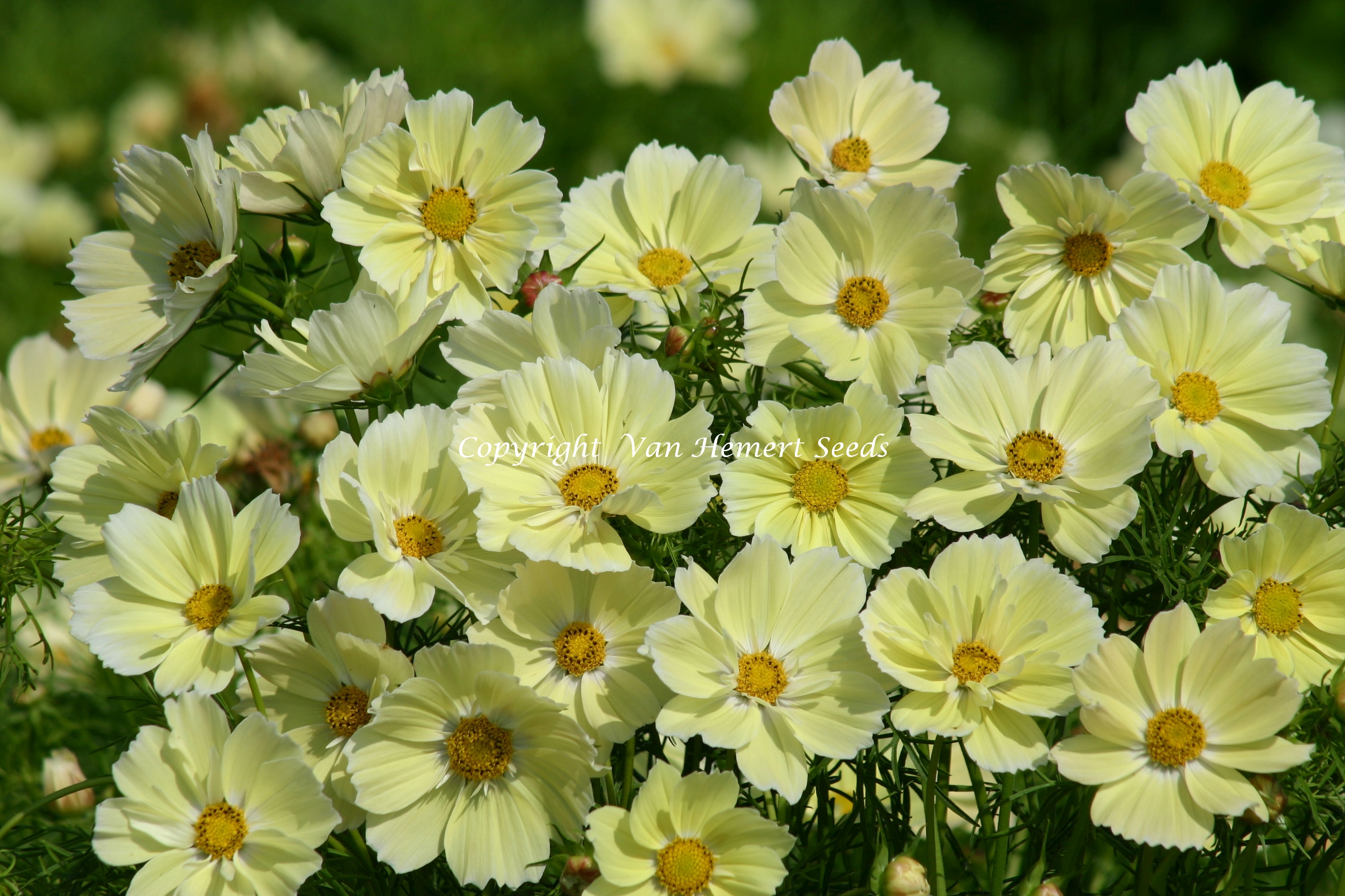 101090 - Cosmos: the sky is the limit, but Xanthos goes beyond. Cosmos Xanthos is an amazing Cosmos. This breeding breakthrough excited many visitors of the 2014 Fleuroselect trials. They had seen many Cosmos varieties before but never seen such a unique yellow Cosmos bipinnatus. Early flowering with round flowers, single and some with collarette in stunning soft yellow. Press-Award Plantarium 2015. Fleuroselect Gold Medal 2016