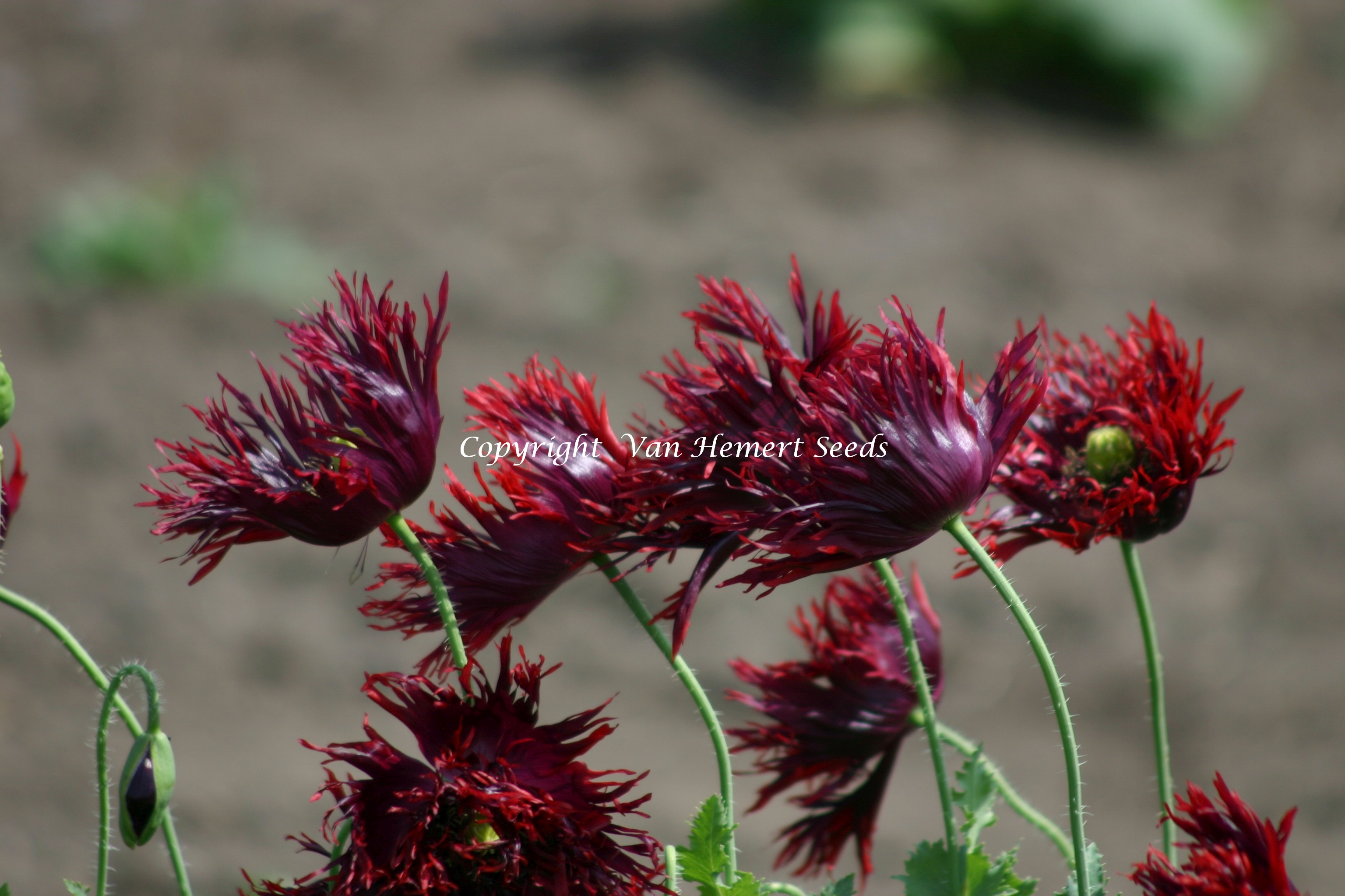 106275 - Laciniatum type: the flowers are double to semi double and frilled with numerous finely cut petals in shining black or better dark burgundy red.