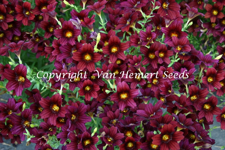 107010 - Large trumpet-shaped flowers in black, sometimes slightly veined with gold. Growing Salpiglossis needs some attention but you will be rewarded with blooms in a spectacular colour when grown in a warm and sheltered position in the garden or as pot plant.